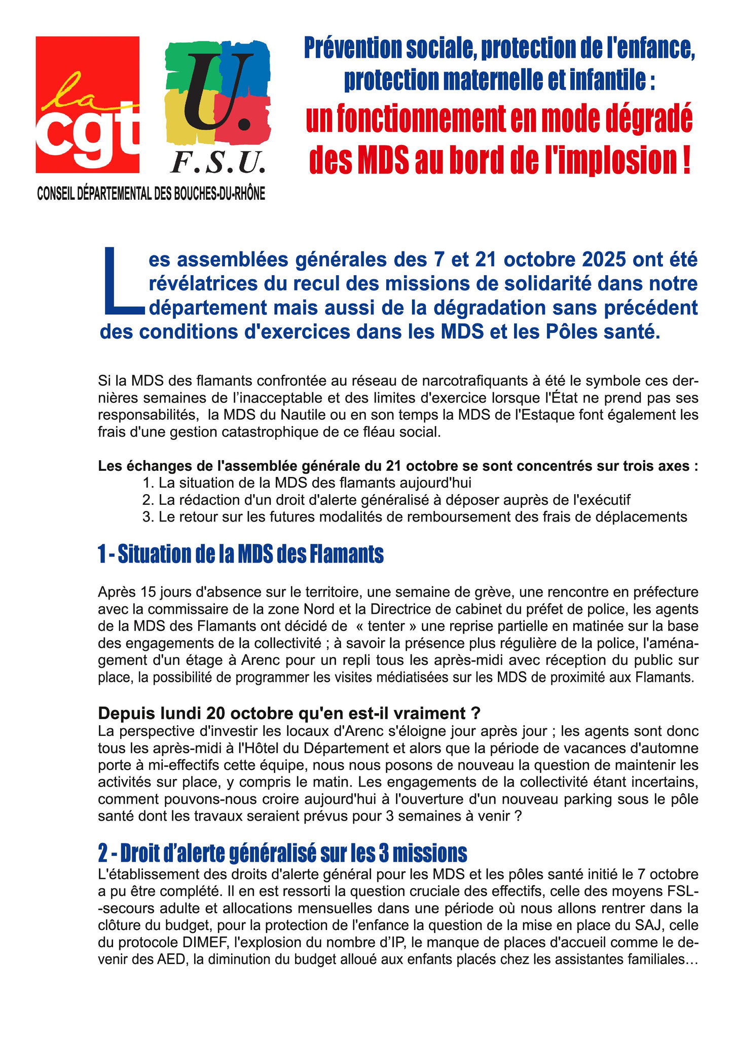 Les 21 et 22 octobre, la section syndicale CGT des agents techniques des collèges mobilisés sont allés à la rencontre de leurs collègues pour faire connaître les revendications. Depuis trop longtemps, les ATC subissent des conditions de travail dégradées :